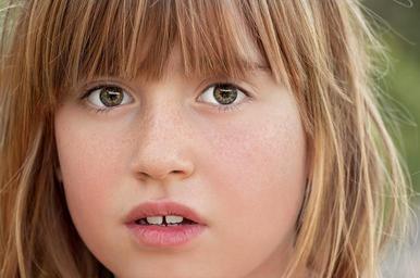 Keywords: person human female face eyes view red head portrait close