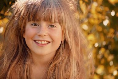 Keywords: person human girl long hair face smile pretty freckles out nature portrait close
