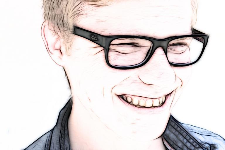 Keywords: person man smile joy boy face section glasses view side drawing pencil stylish