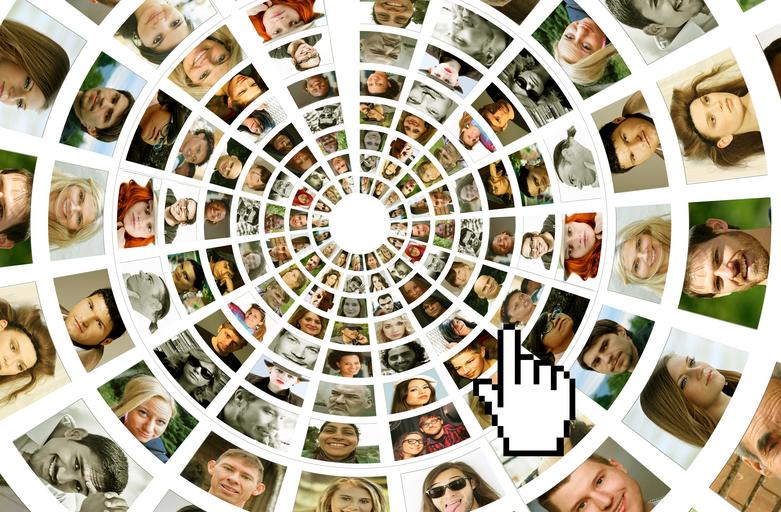 Keywords: person man woman faces heads human portrait center arrangement district about cursor hand click communication connection social media interaction friends