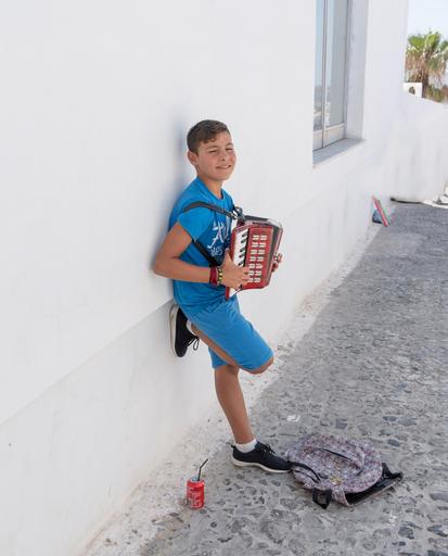 Keywords: person people boy santorini greece entertaining happy young male accordian