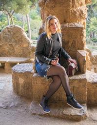 Keywords: person people woman barcelona spain gaudi guell park architecture travel lifestyle city female caucasian young tourist girl happy europe tourism outdoor catalonia smiling nature