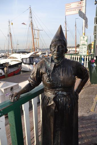 Keywords: person sculpture volendam holland bronze fig metal statue seaside port bay