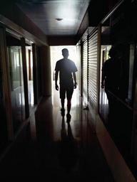 Keywords: person walking man lonely hallway silhouette