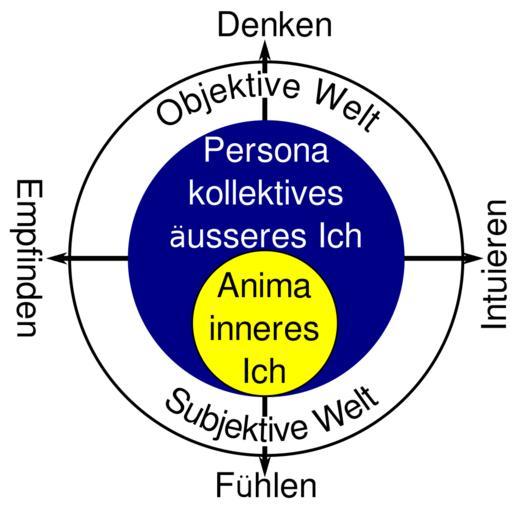 Keywords: Persona.svg de Einfügung des Konzepts der kollektiven und individuellen Ich-Funktionen in das Grundkonzept der psychologischen Basisfunktionen Fühlen Denken Empfinden und Intuieren nach C G Jung Keine genaue Reproduktion basiert lose auf Jacobi Jolande Die Psychologie von C G Jung Eine Einfuehrung in das Gesamtwerk Mit einem Geleitwort von C G Jung Fischer Taschenbuch Frankfurt Maerz 1987 Seite 37 Author Psychological Types Cc-zero |