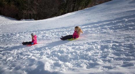 Keywords: personal human children girl bob ride on slip downhill fun winter fun winter snow in motion in action