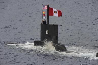 | Keywords: Peruvian submarine BAP Islay (SS-35).JPG en ATLANTIC OCEAN Sep 23 2014 Peruvian submarine BAP Islay SS-35 pulls alongside the aircraft carrier USS Theodore Roosevelt CVN 71 Islay participated in a maneuvering exercise with Theodore Roosevelt the guided-missile cruiser USS Normandy CG 60 and the guided-missile destroyers USS Winston Churchill DDG 81 USS Forrest Sherman DDG 98 and USS Farragut DDG 99 Theodore Roosevelt is currently out to sea preparing for future deployments U S Navy photo by Mass Communication Seaman Anthony N Hilkowski/Released 2014-09-23 07 57 55 140923-N-ZF498-067 Navy http //www navy mil/view_image asp id 184885 U S Navy photo by Mass Communication Seaman Anthony N Hilkowski/Released other versions PD-USGov-Military-Navy BAP Islay SS-35 Uploaded with UploadWizard |