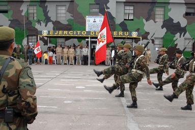 | Keywords: PeruvianArmySoldiers.jpg Peruvian army soldiers perform during a closing ceremony to celebrate the port visit of US hospital ship USNS Comfort T-AH 20 in Trujillo Peru http //www southcom mil 2007-08-12 Joshua Karsten Mass Communication Specialist 2nd Class PD-USGov-Military-Navy Military parades in Peru Color guards of Peru Goose step Photographs of military flags of Peru |