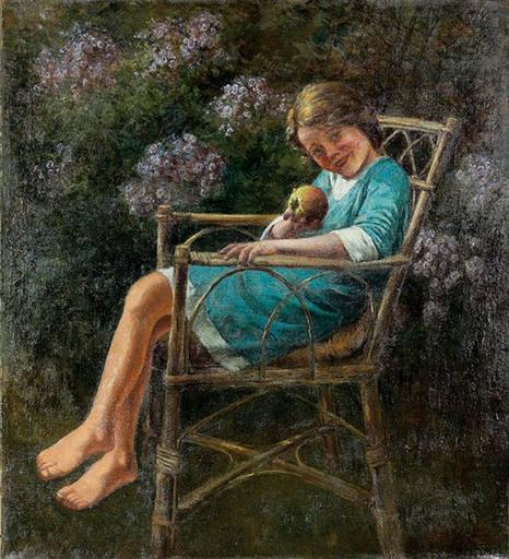 Keywords: Peske Girl in the Garden Chair.jpg Artwork Creator Géza Peske Oil on canvas Size cm 94 105 Private collection object history credit line bottom right Peske Géza accession number http //axioart com/ axioart com http //axioart com/index php set_lang en op live_item id 477721 Info http //axioart com/images/live_images/original/2421/30 jpg Pic PD-old-70 Paintings by Géza Peske Portraits of girls with dolls Chairs in art |