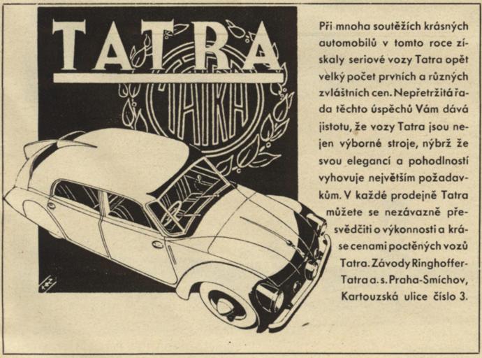 | Keywords: Pestrý týden - Tatra reklama 9.png cs Reklama v časopise Pestrý týden 1937 mzk 5f3759d4-435f-11dd-b505-00145e5790ea Pestrý týden 18 9 1937 Číslo 38 author other versions Custom license marker 2016 04 07 Anonymous-EU Advertising in Czechoslovakia Advertisements in Pestrý týden Tatra logos Tatra advertisements |
