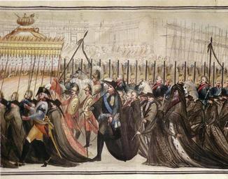 Keywords: Peter III of Russia's burial det13.jpg Вто ичные похо оны Пет а III 2 декаб я 1796 г Составить п едставление о том как выглядела т ау ная п оцессия мы можем по ее изоб ажению сделанному неизвестным по всей ве оятности итальянским художником Изоб ажение это п едставляет собой улон длиной 15 8 м и ши иной 0 75 м Цент т ау ной п оцессии - колесница с са кофагом под балдахином Рядом с ней идет импе ато с ма шальским жезлом и т остью следом импе ат ица а ия Федо овна с доче ьми и свитой http //babs71 livejournal com/196710 html ~ 1796 Italian anonimous Peter III's burials 1796 Files uploaded by Shakko from various sources PD-Art Paul I of Russia Maria Feodorovna Sophie Dorothea of Württemberg Ermine clothing in art |