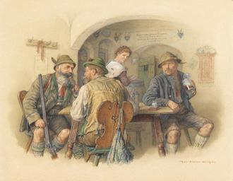 | Keywords: Peter Krämer II Jäger im Wirtshaus.jpg Jäger im Wirtshaus Ca 1910er Jahre Aquarell und Gouache über Bleistift auf Karton Rechts unten signiert und bezeichnet München 21 8 x 27 8 cm http //www kettererkunst de/ s 1910 Creator Peter Krämer II PD-old-auto-1923 1936 Peter Krämer II 1910s paintings Bavaria in the 1910s Watercolor paintings of people Images from Ketterer Kunst Tracht in art Hunters in art Taverns in art Paintings of waitresses Human backs in art Beer drinking in art Taken with Hasselblad H3D II-31 |