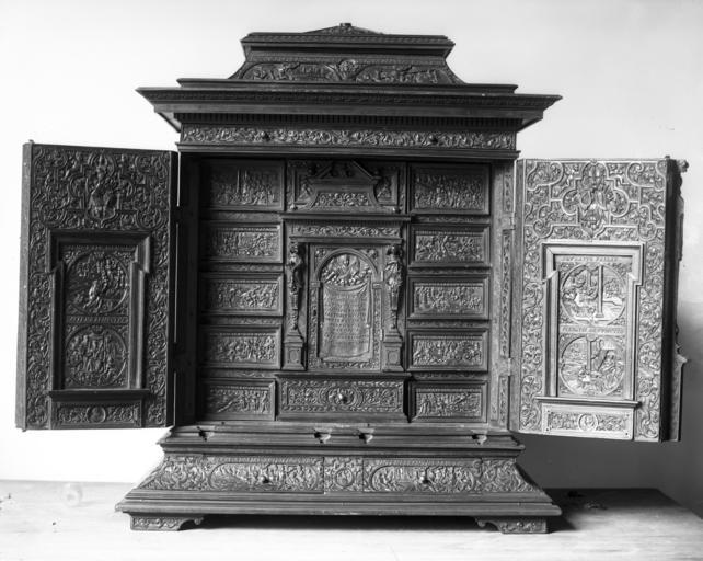 Keywords: Peter Opel - Cabinet with Scenes from the Life of David - Walters 655 (2).jpg This cabinet with its 17 compartments some hidden is a marvel of woodcarving and a celebration of intricacy Architectural elements and ornamental detailing frame narrative compositions organized into a lattice of ordered compartments Forty-eight scenes relate the Old Testament story of David prophet and king as a model of virtue The vigor of these compositions points to their derivation from woodcut designs by a master such as Joost Amman 1539-1591 but the source is unidentified The significance of each scene is distilled by a Latin motto for example the death of David inside of the right-hand door by PIETATIS DEFUNCTIO a pious death The artist Peter Opel of Regensburg proudly inscribed his name on the door to the central compartment and on the back carved his self-portrait dressed as a gentleman but holding a chisel The chest was designed to hold small treasures and antiquities ca 1580 1590 Renaissance carved pine boxwood cm 72 57 6 accession number 65 5 37703 Arnold Seligmann Rey and Co New York date and mode of acquisition unknown Henry Walters city Baltimore Walters Art Museum Henry Walters Acquired by Henry Walters 1915 Signature; Transcription PIETATIS DEFUNCTIO; Translation a pious death World of Wonder The Walters Art Gallery Baltimore 1971-1972 Highlights from the Collection The Walters Art Gallery Baltimore 1998-2001 place of origin Regensburg Germany <gallery> File Peter Opel - Cabinet with Scenes from the Life of David - Walters 655 jpg </gallery> Walters Art Museum license Renaissance applied arts in the Walters Art Museum Furniture in the Walters Art Museum Peter Opel 16th-century way of life preserved artefacts |