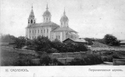 | Keywords: Peter and Paul Church in Smolensk 2.jpg en Peter and Paul Church in Smolensk from the street and Paul now - Cachin street ru Це ковь Пет а и Павла в Смоленске со сто оны улицы Пет опавловской ныне - улица Кашена О игинальная отк ытка е установлены before 1917 года PD-RusEmpire 20th-century postcards of Russia Postcards of Smolensk |