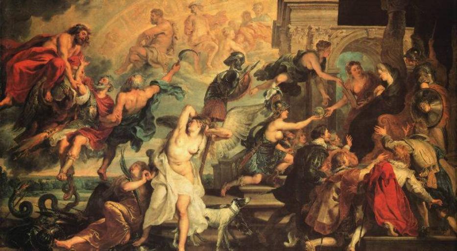 | Keywords: Peter Paul Rubens - The Apotheosis of Henry IV and the Proclamation of the Regency of Marie de Médicis - WGA20342.jpg between 1623 1625 Oil on canvas size cm 394 727 Institution Louvre object history credit line accession number WGA link 20342 http //www wga hu/art/r/rubens/40histor/06medici jpg http //www wga hu/html/r/rubens/40histor/06medici html PD-old-100 painting historical Flemish 1601-1650 Marie de' Medici cycle 14 WGA form painting WGA type historical WGA School Flemish WGA time period 1601-1650 Iupiter Saturnus deus Bellona Minerva Paintings by Peter Paul Rubens in the Louvre |