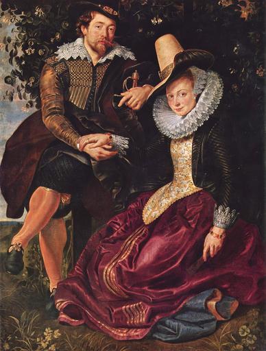 Keywords: Peter Paul Rubens Peter Paul Rubens - The Artist and His First Wife, Isabella Brant, in the Honeysuckle Bower.korr.jpg Artwork Creator Peter Paul Rubens Geißblatt Jelängerjelieber war als Treuesymbol bekannt die ineinandergelegten Hände dextrarum iunctio deuteten seit der Antike auf den Ehestand hin Jedoch sind diese Verweise völlig in die lebensnahe Momentaufnahme integriert Bürgerliche Zufriedenheit beachtlicher Wohlstand tiefe Zuneigung der Eheleute kommen in dem Bild zum Ausdruck Directly after his return from Italy the 32 year old Rubens married the 18 year old Isabella Brant This double portrait which broke new ground in portrait painting was purportedly done shortly thereafter Rubens did not however give up using traditional symbolism Honeysuckle was a well known symbol for faithfulness and hands laid over one another dextrarum iunctio have symbolized matrimony since ancient times However these references are integrated into this snapshot-like scene in which middle-class contentedness substantial affluence and strong affection are expressed <ref>http //wayback archive org/web/20110606170051/http //www pinakothek de/peter-paul-rubens/rubens-und-isabella-brant-der-geissblattlaube Bayerische Staatsgemäldesammlungen</ref> reflist ca 1609/1610 Oil canvas panel cm 178 136 5 Institution Alte Pinakothek VII http //wayback archive org/web/20110606170051/http //www pinakothek de/peter-paul-rubens/rubens-und-isabella-brant-der-geissblattlaube Bayerische Staatsgemäldesammlungen object history Aus der Düsseldorfer Galerie credit line accession number 334 Yorck Original upload log de wikipedia Peter+Paul+Rubens+105korr jpg 2007-12-22 13 14 Goldi64 2024×2673× 1649660 Bytes <nowiki> Andere Versionen Peter_Paul_Rubens_105 jpg A</nowiki> PD-Art-YorckProject Honeysuckle Bower by Peter Paul Rubens 02 |
