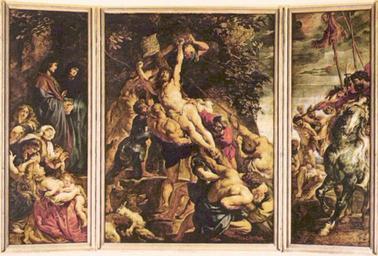 | Keywords: Peter Paul Rubens - Raising of the Cross Tryptich.jpg Artwork de Kreuzaufrichtung Triptychon Gesamtansicht Szene von links Maria und Hl Johannes Aufrichtung des Kreuzes Soldaten oil canvas de Mitteltafel 462 × 341 cm Flügel je 462 × 150 cm de Antwerpen de Onze Lieve Vrouwe-Kerk The Yorck Project 10 000 Meisterwerke der Malerei DVD-ROM 2002 ISBN 3936122202 Distributed by DIRECTMEDIA Publishing GmbH ca 1610-1611 creator Peter Paul Rubens http //mail wikipedia org/pipermail/wikide-l/2005-April/012195 html Other versions The Raising of the Cross by Rubens PD-old-100 PD-Art-YorckProject |
