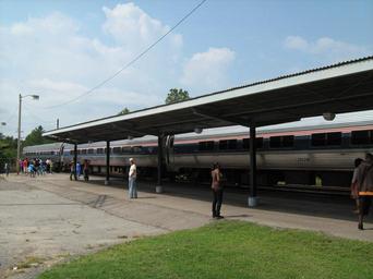 | Keywords: Petersburg VA Amtrak train stop 2.jpg Petersburg Amtrak station in Virginia own 2010-08-27 CZmarlin ” Christopher Ziemnowicz releases all rights but a photo credit would be appreciated if this image is used anywhere other than Wikipedia Please leave a note at Wikipedia http //en wikipedia org/w/index php title User_talk CZmarlin action edit section new here Thank you en I the copyright holder of this work hereby release it into the public domain This applies worldwide thumb left The rear of the station viewed from under the canopy over the platform thumb center View towards the north thumb left Detail of the rear station entrance that looks over the platform and trains thumb center View of the station and platform with Amtrak train heading north thumb left View at platform with a north-bound Amtrak train while stopped in Petersburg VA Petersburg Amtrak station Amfleet passenger cars |