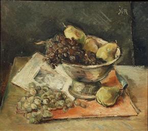 | Keywords: Petre Iorgulescu - Yor - Natura statica cu pere si struguri.jpg Artwork Creator Petre Iorgulescu-Yor Oil canvas cm Muzeul National de Arta Bucharest object history credit line YoR ~ upper right monogram accession number http //www mnar arts ro/expo php id 6 Reproduction of a painting that is in the public domain because of its age PD-old-auto 1939 Still life paintings by Petre Iorgulescu-Yor Paintings of pears Paintings of grapes Paintings not categorised by year Paintings in the National Museum of Art of Romania |