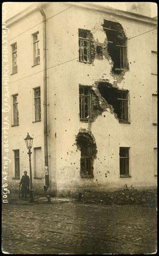 | Keywords: Petrogradskaia storona SPb 000000396 1 m.jpg Saint Petersburg Russia 18 Bolshaya Grebetskaya now Pionerskaya Street View of the Vladimir military junker school building after the suppression of the junkers' uprisal against bolsheviks on November 11 1917 the building was demolished in 2007 Санкт-Пете бу г Большая Г ебецкая улица тепе ь Пионе ская дом 18 снесён в 2007 г Здание Владими ского военного училища после подавления антибольшевистского восстания юнке ов 29 октяб я 11 нояб я 1917 года Saint-Pétersbourg 18 rue Bolshaya Grebetskaya aujourd'hui Pionerskaya La vue sur le bâtiment de l'Ecole militaire de Vladimir après la suppression de l'insurrection des junkers étudiants-militaires contre les bolcheviks le 11 novembre 1917 ce bâtiment était démoli en 2007 http //www nlr ru/petersburg/spbpcards/arterii/4 htm author 1917 PD-old Postcards of Saint Petersburg Pionerskaia Street Saint Petersburg Artillery of Russia 1917 in Saint Petersburg |