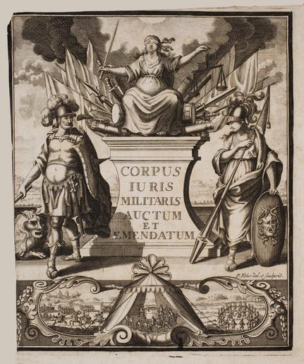 Keywords: Petrus-Pappus-Corpus-juris-militaris MG 1077.tif PD-Art-100 D-Vorm Peace Palace Library collection Petrus Pappus Corpus juris militaris auctum et emendatum oder Vollkommenes Krieges-Recht der hohen Potentaten in Europa benanntlich Ihro Röm Käyserl Majestät königl frantzös Gross-Britann ingleichen chur pfältz hannov fürstl braunschw Kriegs-Artickel so wohl als die moscowitische der Republiquen Holland Schweitz Artickels-Briefe welche mit deren neuen Kriegs-Satzungen sonderlich was dabey quoad formalia nöthig oder sonsten in Acht zu nehmen ist erläutert und vermehret worden Editio quinta Publisher Franckfurt am Mayn In Verlegung Johann Völckers Buchhändlers daselbst gedruckt und zu finden bey Friederich Knoch Annotation originally compiled by Petrus Pappus von Tratzberg and first published in 1636 under title Artikelbrief/ordonnantie Institution Peace Palace Library Uploaded with GWToolset Petrus-Pappus-Corpus-juris-militaris_MG_1077 http //www peacepalacelibrary nl/images/wikimedia/20-maart/183G15-055981429_MG_1077 tif Prints from the Peace Palace Library Images from the Peace Palace Library |