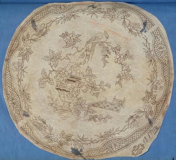 | Keywords: Petrus Regout & Co. Portici 001.jpg Artwork ucfirst anonymous Bird with a long tail sitting on a branch of a peony growing from a garden pot Chinoiserie Transfer print on paper 1860 ink pencil paper unknown Institution Sociaal Historisch Centrum voor Limburg place of discovery object history exhibition history credit line 12 8<sup>br</sup> <u>1860</u> date bottom right ~ PORTICI / PIERRE REGOUT mark bottom right fr LangSwitch In reverse In spiegelbeeld Ronde schotel 12 D<sup>m</sup> instruction top left nl accession number 01477 place of creation Maastricht www geheugenvannederland nl http //geheugenvannederland nl Home http //geheugenvannederland nl/en/items/SHCL01 01477 Info http //resolver kb nl/resolve urn urn gvn SHCL01 01477 role image size largest Pic color image 42 PD-Art-100 Petrus Regout pottery Transfer printing Sociaal Historisch Centrum voor Limburg |