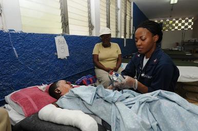 | Keywords: Petty Officer 2nd Class Kisha Wright Treats Patients DVIDS248917.jpg en Petty Officer 2nd Class Kisha Wright a hospital corpsman is from Valdosta Ga and is assigned to the Health Services Department aboard the Whidbey Island-class dock-landing ship USS Gunston Hall LSD 44 based out of Joint Expeditionary Base Little Creek-Fort Story in Virginia Beach Va Gunston Hall was diverted from its original Africa Partnership Station West mission and is currently conducting humanitarian and disaster relief operations as part of Operation Unified Response offshore near the Killick Haitian Coast Guard Base Photo by Petty Officer 2nd Class John Stratton 2010-02-05 Petty Officer 2nd Class John Stratton https //www dvidshub net/image/248917 100205-N-+++++-010 2010-02-08 08 23 USS GUNSTON HALL HT PD-USGov-Military-Navy Joint Expeditionary Base Little Creek-Fort Story USS Gunston Hall LSD-44 Operation Unified Response Images from DoD uploaded by Fæ |