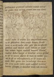 | Keywords: Pfaffe Konrad - Rolandslied - cod. pal. germ. 112 - 053.jpg Pfaffe Konrad - Rolandslied - cod pal germ 112 - jpg 052 054 Beratung und Verschwörung Geneluns mit den Heiden unter einem Ölbaum Rolandslied des Pfaffen Konrad à bersetzung bzw Bearbeitung der altfranzösischen Chanson de Roland um 1100 Blatt 26r Pfaffe Konrad Rolandslied Pergament 123 Blatt 21x15 cm Regensburg/Hessen-Thüringen Ende 12 Jahrhundert Cod pal germ 112 Universitätsbibliothek Heidelberg http //diglit ub uni-heidelberg de/diglit/cpg112 century 12 Pfaffe Konrad PD-old Rolandslied Cod Pal germ 112 |
