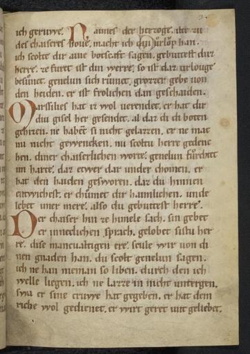 | Keywords: Pfaffe Konrad - Rolandslied - cod. pal. germ. 112 - 077.jpg Pfaffe Konrad - Rolandslied - cod pal germ 112 - jpg 076 078 Rolandslied des Pfaffen Konrad à bersetzung bzw Bearbeitung der altfranzösischen Chanson de Roland um 1100 Blatt 38r Pfaffe Konrad Rolandslied Pergament 123 Blatt 21x15 cm Regensburg/Hessen-Thüringen Ende 12 Jahrhundert Cod pal germ 112 Universitätsbibliothek Heidelberg http //diglit ub uni-heidelberg de/diglit/cpg112 century 12 Pfaffe Konrad PD-old Rolandslied Cod Pal germ 112 |