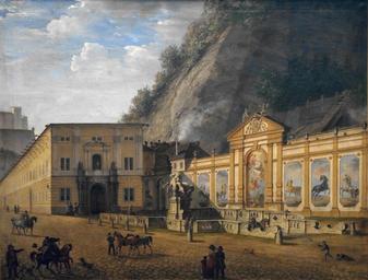 | Keywords: Pferdeschwemme Salzburg painting 1828 without frame.jpg langswitch without frame ohne Rahmen Salzburg Pferdeschwemme bei den Hofstallungen oil on canvas Salzburg Museum Inv Nr 93/25 own photo User MatthiasKabel 1828 Creator Johann Michael Sattler PD-art-100 Johann Michael Sattler Paintings of Salzburg 1828 paintings Pferdeschwemme Salzburg Herbert-von-Karajan-Platz Salzburg Großes Festspielhaus Salzburg | ||||