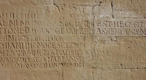 Keywords: Pfofeld 2012-03-27 (4).JPG de Evang -Luth Pfarrkirche St Michael in Pfofeld im Landkreis Weißenburg- lateinische Weiheinschrift neben dem Eingang auf der Südseite own Rensi 2012-03-27 Saint Michael Church Pfofeld Cc-zero