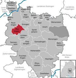 | Keywords: Pfullingen in RT.svg DeLocMaps Pfullingen Landkreis Reutlingen District of Reutlingen Reutlingen district L'arrondissement de Reutlingen Arrondissement de Reutlingen Baden-Württemberg Bade-Wurtemberg Baden-Württemberg Adobe Illustrator own based on File Municipalities in Baden-Württemberg svg by TUBS File Baden-Württemberg HD district svg by TUBS 2010-03-23 TUBS self TUBS TUBS/licensesection Attribution TUBS/Credits Locator maps of municipalities in Landkreis Reutlingen Pfullingen | ||||
