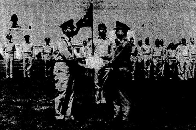 | Keywords: blackandwhite monochrome black and white PERFECT FIRING AWARD - Men of Battery C, 176th AAA Missile Battalion line up for a special outdoor ceremony at the Village Green Nike site yesterday when Capt. Shelton Mitchell, commander of the battery (left forground) received the U.S. Amry Air Defense Commander's trophy and a commendation for his battery's three perfect firings of the Nike Ajax missile last March. Col. Alvin D. Robbins, commander of hte 24th AAA Group headquartered at Swarthmore (right) made the presentation. SP/3 Harry Ellis was color guard during the ceremony. PERFECT FIRING AWARD - Men of Battery C, 176th AAA Missile Battalion line up for a special outdoor ceremony at the Village Green Nike site yesterday when Capt. Shelton Mitchell, commander of the battery (left forground) received the U.S. Amry Air Defense Commander's trophy and a commendation for his battery's three perfect firings of the Nike Ajax missile last March. Col. Alvin D. Robbins, commander of hte 24th AAA Group headquartered at Swarthmore (right) made the presentation. SP/3 Harry Ellis was color guard during the ceremony. |