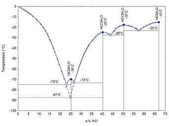 | Keywords: Phase diagram HCl H2O s l.PNG en Solid-liquid phase diagram of binary HCl water mixtures de fest-flüssig Phasendiagramm von HCl-Wasser-Mischungen own Steffen 962 2009-11-13 erstellt aus Daten vom Gmelins Handbuch der anorganischen Chemie plotted with data from the German books Gmelins Handbuch der Anorganischen Chemie Systemnummer 6 Chlor Verlag Chemie Berlin 1927 and Gmelins Handbuch der Anorganischen Chemie Systemnummer 6 Chlor Ergänzungsband Teil B - Lieferung 1 Verlag Chemie Weinheim 1968 Since 1990 the Gmelin was published as Gmelin Handbook of Inorganic and Organometallic Chemistry Phase change diagrams Melting Hydrochloric acid Hydrogen chloride Binary phase diagrams |