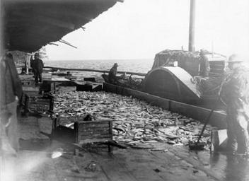 | Keywords: fishing commercial fishing commercialfishing north carolina northcarolina coast outer banks outerbanks blackandwhite monochrome black and white Just Landed, Capehart Fishery, Bertie County, NC, c.1910's. From the H. H. Brimley Photograph Collection, PhC.42, North Carolina State Archives, Raleigh, NC. Just Landed, Capehart Fishery, Bertie County, NC, c.1910's. From the H. H. Brimley Photograph Collection, PhC.42, North Carolina State Archives, Raleigh, NC. | ||||