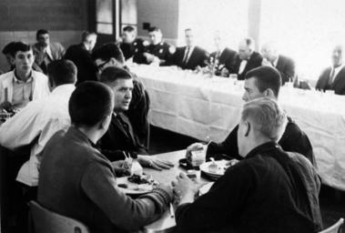 Keywords: terry sanford terrysanford monochrome groupshot people blackandwhite black and white Photo by Lt. Lloyd Burchett of the North Carolina Highway Patrol. From the Raymond Stone Photograph Collection of Governor Terry Sanford's Education Tour, 1962, PhC.136, State Archives of North Carolina, Raleigh, NC. Photo by Lt. Lloyd Burchett of the North Carolina Highway Patrol. From the Raymond Stone Photograph Collection of Governor Terry Sanford's Education Tour, 1962, PhC.136, State Archives of North Carolina, Raleigh, NC.