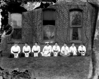 | Keywords: blackandwhite monochrome outdoor black and white Kat Klub, aka Katydids, Meredith College; Raleigh, NC. Photograph appears in the 1916 "Oak Leaves" Meredith College yearbook, page 87. Individuals identified include Kate Jessup, Kate Copple, Kate Murray, Kate Beckwith, Kathleen Moss, Kathleen Covington, Kate Matthews, and mascot; Katherine, the Maid. c. 1916 (8"x10" glass plate negative). From the J. C. Knowles Photograph Collection, State Archives of North Carolina, Raleigh, NC. Kat Klub, aka Katydids, Meredith College; Raleigh, NC. Photograph appears in the 1916 "Oak Leaves" Meredith College yearbook, page 87. Individuals identified include Kate Jessup, Kate Copple, Kate Murray, Kate Beckwith, Kathleen Moss, Kathleen Covington, Kate Matthews, and mascot; Katherine, the Maid. c. 1916 (8"x10" glass plate negative). From the J. C. Knowles Photograph Collection, State Archives of North Carolina, Raleigh, NC. |