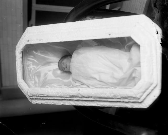 | Keywords: blackandwhite monochrome indoor black and white Unidentified baby in casket. No date; estimated 1915 (8"x10" glass plate negative). From the J. C. Knowles Photograph Collection, State Archives of North Carolina, Raleigh, NC. Unidentified baby in casket. No date; estimated 1915 (8"x10" glass plate negative). From the J. C. Knowles Photograph Collection, State Archives of North Carolina, Raleigh, NC. | ||||