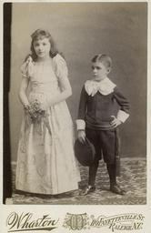 | Keywords: people photo border monochrome Mattie Pace Fuller (1879-1953) and Maj. William (Willie) Heck Pace (1883-1940). Grandchildren of Jonathan McGee and Mattie Anna Callendine Heck. Wharton Photo Studio; Raleigh, NC. No date; 1889 (Cabinet Card 4”x6.5”). From the R. Beverly R. Webb Photograph Collection ca. 1880-1900, PhC.19, State Archives of North Carolina, Raleigh, NC. Mattie Pace Fuller (1879-1953) and Maj. William (Willie) Heck Pace (1883-1940). Grandchildren of Jonathan McGee and Mattie Anna Callendine Heck. Wharton Photo Studio; Raleigh, NC. No date; 1889 (Cabinet Card 4”x6.5”). From the R. Beverly R. Webb Photograph Collection ca. 1880-1900, PhC.19, State Archives of North Carolina, Raleigh, NC. |