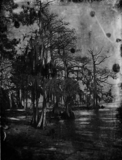| Keywords: blackandwhite monochrome outdoor black and white Cypress trees on sound shore, Chowan County, NC, c.1905 (N.2000.11.106) This negative has been treated or otherwise tinted with a red colored dye or stain (theories as to why this tint was applied vary but have been winnowed down to basically two possibilities – the red is one of three plates that might have been produced in order to make an early color print or the tint was applied to try to somehow enhance or alter the printing). From the Ross and Frances Inglis Photograph Collection, PhC.96, State Archives of North Carolina, Raleigh, NC. Cypress trees on sound shore, Chowan County, NC, c.1905 (N.2000.11.106) This negative has been treated or otherwise tinted with a red colored dye or stain (theories as to why this tint was applied vary but have been winnowed down to basically two possibilities – the red is one of three plates that might have been produced in order to make an early color print or the tint was applied to try to somehow enhance or alter the printing). From the Ross and Frances Inglis Photograph Collection, PhC.96, State Archives of North Carolina, Raleigh, NC. |