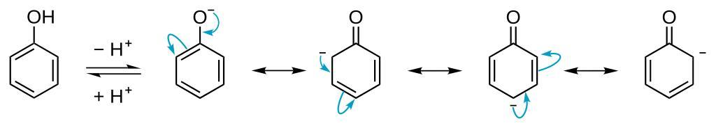 Keywords: Phenol-phenolate equilibrium.svg Phenol proton dissosiation to form phenolate and its stabilization by resonance Selfmade with ChemDraw 2006-12 Calvero Phenol Mesomerism Phenoxide ion
