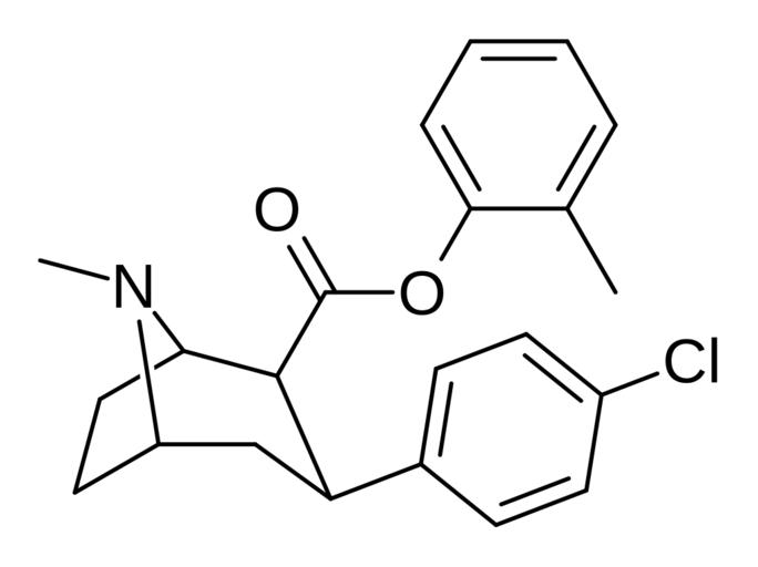 Keywords: Phenyltropane 24g.svg Chemical structure of a phenyltropane Own 11 31 19 March 2016 UTC Ed Edgar181 Phenyltropanes