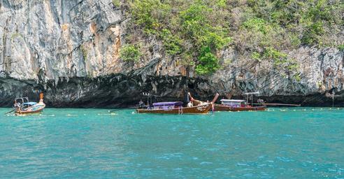 Keywords: phi phi island tour phuket thailand wooden boats sea water tourism nature mountains rocks landscape travel summer holiday sky ocean outdoor tropical scenery clouds sunny scenic