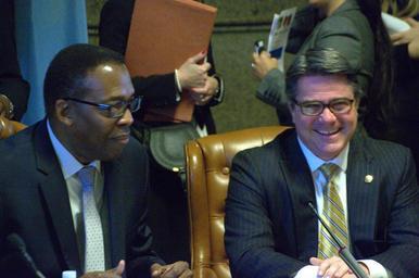 | Keywords: philadelphia city council philadelphiacitycouncil philadelphia darrell clarke darrellclarke bobby henon bobbyhenon people indoor Photos from the Stated Meeting of Philadelphia City Council held on Thursday, December 10, 2015, the final Council meeting of this term. On the agenda, bills including: a cable franchise renewal with Comcast, two zoning bills regarding a South Philly casino/hotel, a vehicle registration fee designed to fund street calming efforts. Also, a visit from outgoing Philadelphia Mayor Michael A. Nutter, farewells to the three Council Members departing after this term: Marian Tasco (9th District), Wilson Goode, Jr. and Dennis O'Brien (At Large). Photos by Samar Jha/PHL Council Fellow. Photos from the Stated Meeting of Philadelphia City Council held on Thursday, December 10, 2015, the final Council meeting of this term. On the agenda, bills including: a cable franchise renewal with Comcast, two zoning bills regarding a South Philly casino/hotel, a vehicle registration fee designed to fund street calming efforts. Also, a visit from outgoing Philadelphia Mayor Michael A. Nutter, farewells to the three Council Members departing after this term: Marian Tasco (9th District), Wilson Goode, Jr. and Dennis O'Brien (At Large). Photos by Samar Jha/PHL Council Fellow. |