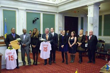 | Keywords: philadelphia city council philadelphiacitycouncil philadelphia dennis o'brien dennisobrien wilson goode jr. wilsongoodejr Photos from the Stated Meeting of Philadelphia City Council held on Thursday, December 10, 2015, the final Council meeting of this term. On the agenda, bills including: a cable franchise renewal with Comcast, two zoning bills regarding a South Philly casino/hotel, a vehicle registration fee designed to fund street calming efforts. Also, a visit from outgoing Philadelphia Mayor Michael A. Nutter, farewells to the three Council Members departing after this term: Marian Tasco (9th District), Wilson Goode, Jr. and Dennis O'Brien (At Large). Photos by Samar Jha/PHL Council Fellow. Photos from the Stated Meeting of Philadelphia City Council held on Thursday, December 10, 2015, the final Council meeting of this term. On the agenda, bills including: a cable franchise renewal with Comcast, two zoning bills regarding a South Philly casino/hotel, a vehicle registration fee designed to fund street calming efforts. Also, a visit from outgoing Philadelphia Mayor Michael A. Nutter, farewells to the three Council Members departing after this term: Marian Tasco (9th District), Wilson Goode, Jr. and Dennis O'Brien (At Large). Photos by Samar Jha/PHL Council Fellow. |