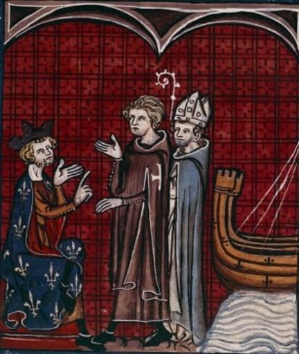 | Keywords: Philip2 patriarch templ.jpg en King Philip II visited by the Patriarch of Jerusalem and the Master of the Temple http //www imagesonline bl uk/pr/315589293/Images_Online_066769 jpg Royal 16 G VI author 14 th century PD-old Philip II of France Knights Templar Third Crusade |