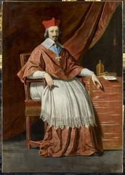 | Keywords: Philippe de Champaigne, Le Cardinal de Richelieu.jpg Artwork creator Philippe de Champaigne 1636 Oil on canvas in 56 69 80 71 Musée Condé 00000077211 object history 1886 ; 1897 Entrée matérielle credit line accession number PE 308 Musée Condé Chantilly other versions PD-old-100 Portraits of Richelieu by Philippe de Champaigne 17th-century portrait paintings in the Musée Condé 1636 1636 oil on canvas paintings in France Portrait 1636 portrait paintings from France Male 17th-century oil portraits of sitting men at full length in ecclesiastical costumes 1636 Badges of the Order of the Holy Spirit in portrait paintings 1636 Portrait paintings of men sitting in armchairs 1636 Portrait paintings of sitting men with arms resting on tables 1636 Red drapery in portrait paintings 1636 |
