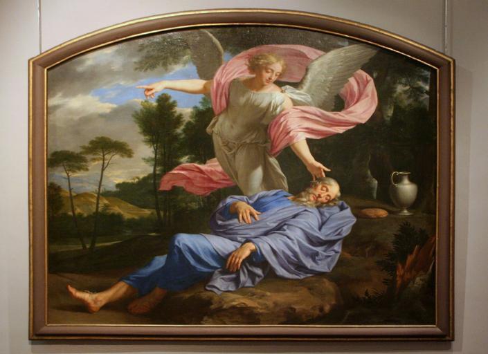 | Keywords: Philippe de Champaigne - Le sommeil d'Élie.jpg Artwork creator Philippe de Champaigne title Le sommeil du prophete Élie <br><br> alternate titles <br>Le songe d'Élie The Prophet Elijah's Dream De droom van de profeet Elia 1650 - 1655 oil canvas cm 182 280 Museum Musée de Tessé 10 85 000PE009667 Object history ProvenanceEvent purchased 1856 Ophelia2 Artwork PD-old-100 Photo Religious paintings by Philippe de Champaigne Angel awakens the prophet Elijah Sleeping men in art Paintings of angels in France 1650s paintings in France Pointing right in art 17th-century religious paintings in France 17th-century paintings of Old Testament Female angels 17th-century oil on canvas paintings in France 17th-century paintings of angels with humans Blue clothing in art male Paintings in the Musée de Tessé Files by User Ophelia2 |