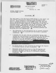 | Keywords: Philippines - NARA - 198326.tif Scope and content General notes 198326 Local identifier President 1981-1989 Reagan National Security Council 1981 - 1989 Ronald Reagan Library NLRR 40 Presidential Drive Simi Valley CA 93065-0600 1986-02-23 Record group Collection RR-NSC Numbered National Security Policy Papers 1981 - 1989 Record group ARC 1189 National Security Decision Directives compiled 02/25/1981 - 01/19/1989 Series ARC 198166 File unit File unit ARC Variant control numbers NAIL Control Number NLS-NSC-NSDD-215 yes Other versions <gallery> File Philippines_-_NARA_-_198326 tif tif File Philippines_-_NARA_-_198326 jpg jpg </gallery> NARA-cooperation PD-USGov Presidential Decision Directives Reagan NARA TIF images with categorized JPGs |