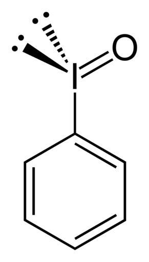 | Keywords: PhIO-2D-skeletal-with-explicit-lone-pair-stereochemistry.png Skeletal formula of iodosobenzene PhIO with the spatial orientation of the iodine lone pairs indicated by wedged bonds Structure drawn in http //www cambridgesoft com/software/ChemBioDraw/ ChemBioDraw Ultra 12 0 Own 2010-04-11 Ben Mills Benjah-bmm27 Images by Ben Mills Iodosobenzene |